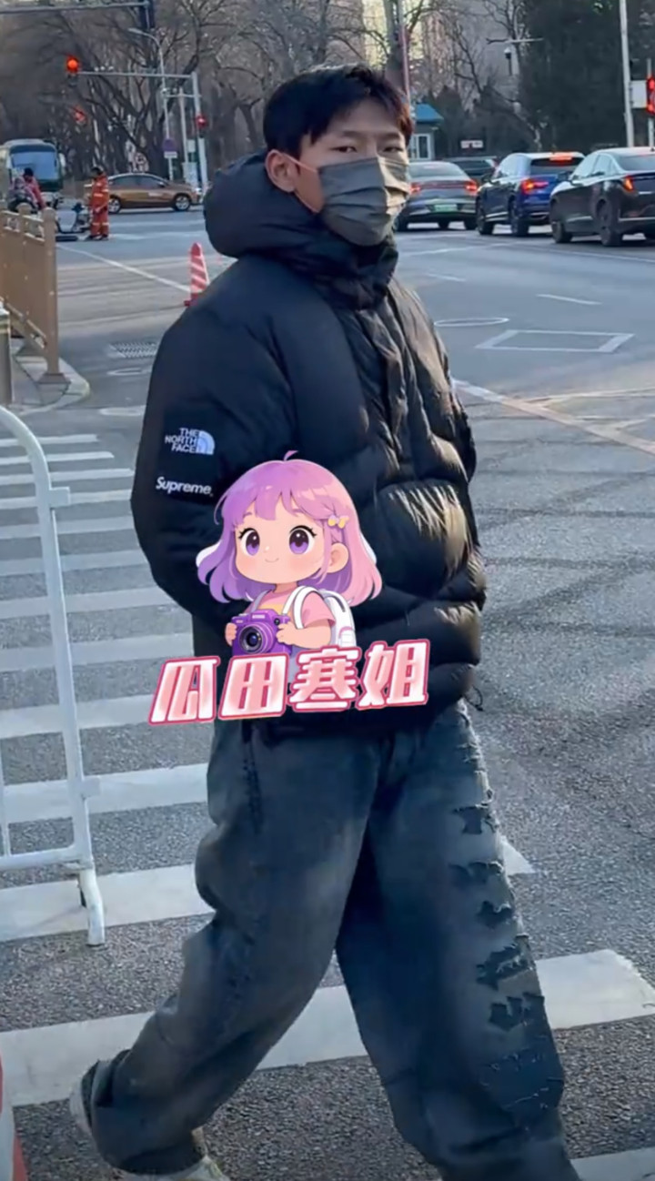 他一点也没有初上大舞台的紧张,羽绒服加牛仔裤,双手插兜跺着步就去了,全场表现得很松弛。