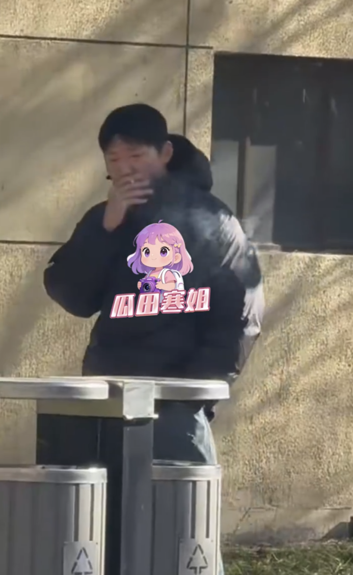 没事的时候在外面靠着墙抽烟,素质还挺高的,烟灰都掸到了垃圾桶里。