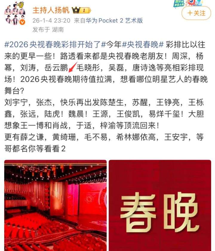 总体来说,就目前曝光的阵容来看,冲击力不是很大,没有特别大的追春晚欲望。