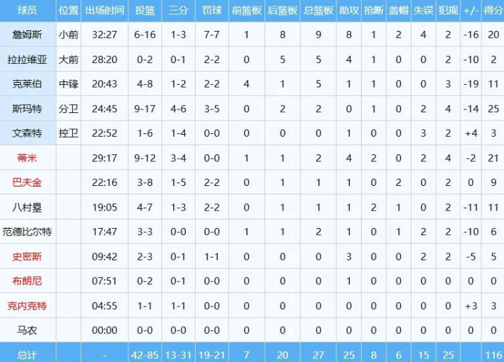 东契奇里夫斯艾顿全部休战,斯玛特中途伤退,超级残阵的湖人客场面对开拓者毫无还手之力,最终116-132大比分落败。
