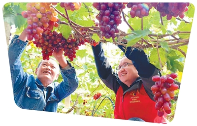 60多岁的老党员王世端是第一批“吃螃蟹的人”,率先改种阳光玫瑰等新品种。在科技人员手把手指导下,挂果率、着色度明显提高,第二年亩产超过4000斤,亩产值一举突破4万元。“有专家团队指导、有驻村工作队帮扶,咱心里就有底气了。”王世端笑着说。
