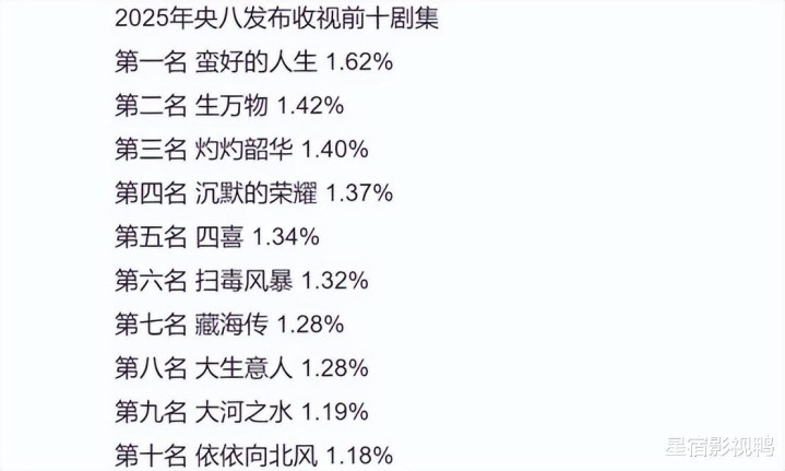 眼下,CCTV电视剧发布了2025年央八收视前十名的电视剧排行,一起看看榜单中有没有你期待的作品。